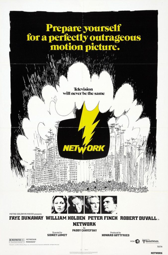 妻子的死给电视台王牌主播霍华德(彼得·芬奇 Peter Finch 饰)带来了沉重的打击,使他陷入痛苦和悲伤中无法自拔。电视台决定解雇已经无心工作的霍华德,霍华德的老朋友麦克斯(威廉·霍尔登 William Holden 饰)成为了传达这一噩耗的不二人选。得知自己即将被 解雇,为电视台做牛做马多年的霍华德十分愤怒,在第二天的节目上,他竟然向观众们预告,自己即将进行自杀直播。 霍华德的这一出格举动惹恼了电视台的高层,更让一直对麦克斯心存不满的总裁弗兰克(罗伯特·杜瓦尔 Robert Duvall 饰)发现了找茬的机会。在隔天的新闻直播中,霍华德理应按计划对自己的不慎言行做出道歉,可是恼羞成怒的他却大放厥词,将矛头直指当代美国的种种弊端。女制片人戴安娜(费·唐纳薇 Faye Dunaway 饰)从霍华德的一系列行为中看出了商机,她买通了弗兰克,成为了霍华德背后的推手。