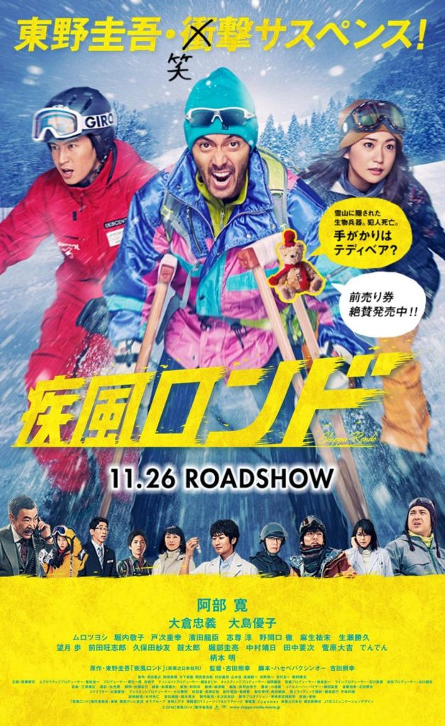 东野圭吾小说《疾风回旋曲》将真人化,阿部宽担任主演。故事讲述医学研究院的生化武器K55被盗,阿部宽饰演面临中年危机的研究员,在雪山中寻找被埋藏的生化武器。影片由NHK晨间剧《小海女》导演吉田照幸执导,目前正在拍摄,其他卡司尚未公开,暂定11月26日本土上映。
