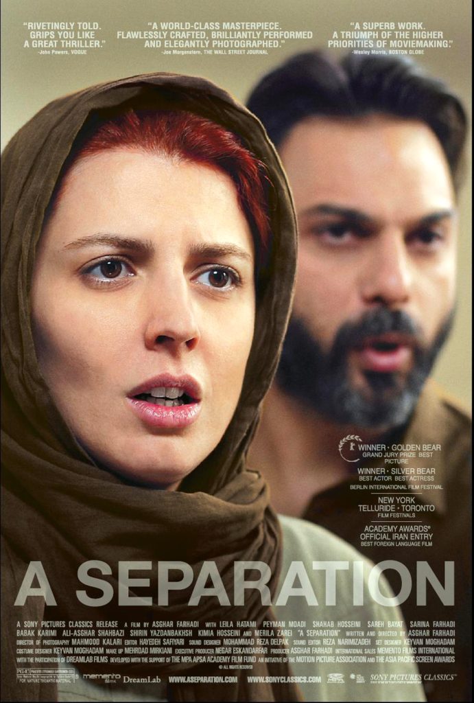 纳德(佩曼•莫阿迪 Peyman Moadi 饰)与西敏(蕾拉•哈塔米 Leila Hatami 饰)是一对夫妻,他们的女儿叫特梅(萨日娜•法哈蒂 Sarina Farhadi 饰)。西敏希望一家三口移居国外,但是纳德坚决反对,原因是纳德的父亲患有老年痴呆症需要照顾。两人为此对薄公堂,准备离婚,但是法院驳回了她的请求。西敏赌气回了娘家。西敏走后,纳德分身乏术,聘请了一位护工瑞茨(萨瑞•巴亚特 Sareh Bayat 饰)照顾父亲。但是,父亲如厕问题始终困扰瑞茨,依《古兰经》教义,她感到禁忌重重。瑞茨的女儿陪伴在她左右,也令她分神。几个回合下来,纳德某次回家发现,父亲被绑在床上,出离愤怒的他推倒了瑞茨。没想到怀孕的瑞茨竟然流产,瑞茨丈夫怒不可遏将纳德告上了法庭,他们各执一词,然而真相却出人意料…… 本片在61届柏林电影节获金熊奖、最佳女演员和最佳男演员银熊奖。