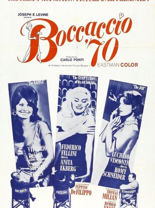 维斯康提那段讲罗密·施奈德扮演的美丽少妇设计向丈夫报仇,冒充他情妇,让他花钱才能得到她;德西卡的那段讲一个胆小的人赢得一个奖,奖品是跟一个女孩的约会;莫尼切里那…
